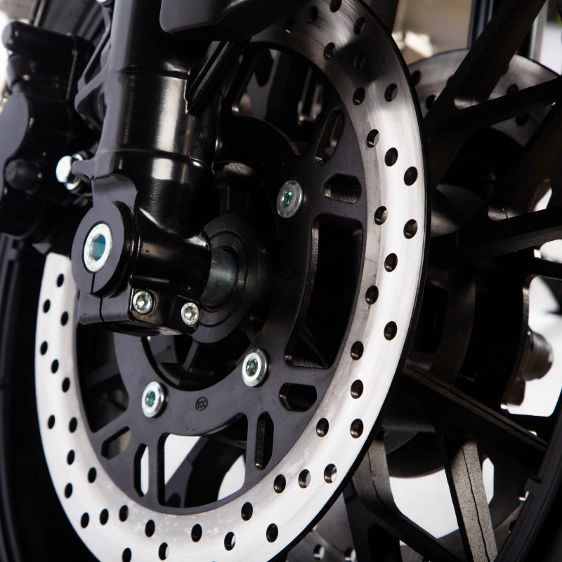 Equipada con un sistema de doble disco de freno delantero, proporcionando una capacidad de frenado superior y una mayor seguridad en cada trayecto. Esta característica garantiza una respuesta de frenado rápida y efectiva.